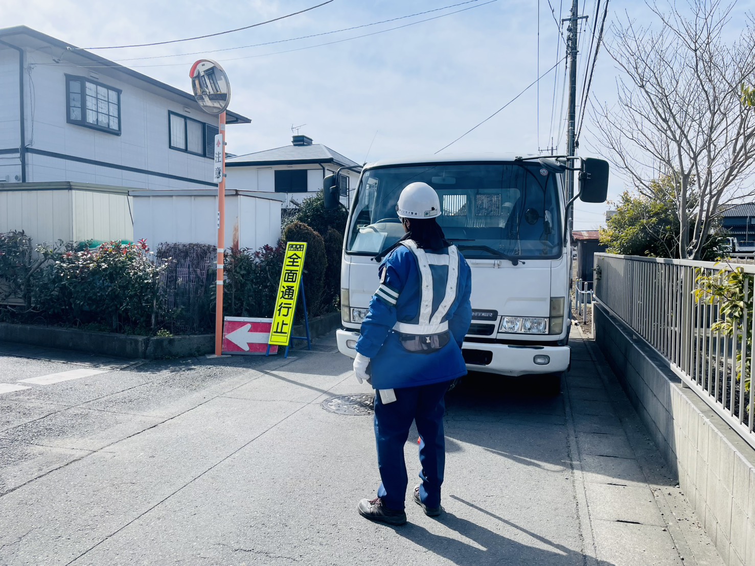公共工事・設備工事・建築工事等で車両や歩行者を安全に誘導します。 円滑な交通の流れを保ち、事故を未然に防ぎます。
